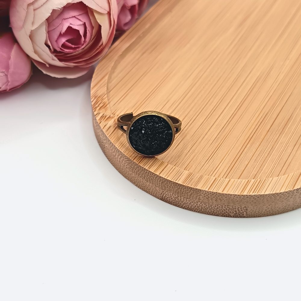 Kezdőlap Gyűrűk Antik bronz gyűrű – csillogó fekete lencsével