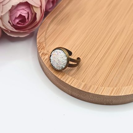 Antik bronz gyűrű – csillogó fehér textilbőrrel