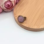 Antik bronz gyűrű – csillogó halványlila lencsével