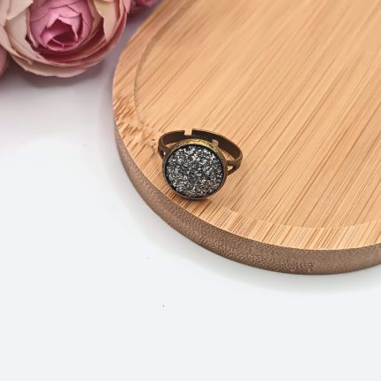 Antik bronz gyűrű – csillogó grafitszürke lencsével 1700 Ft