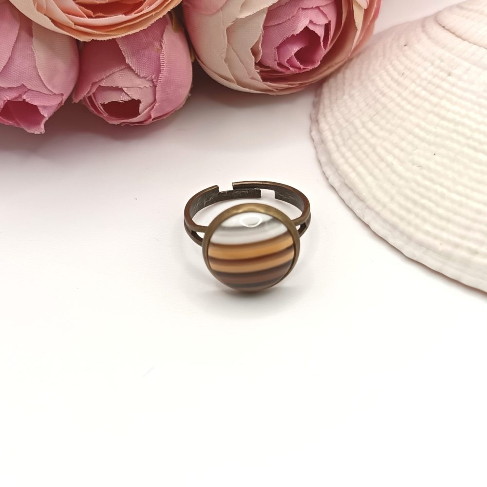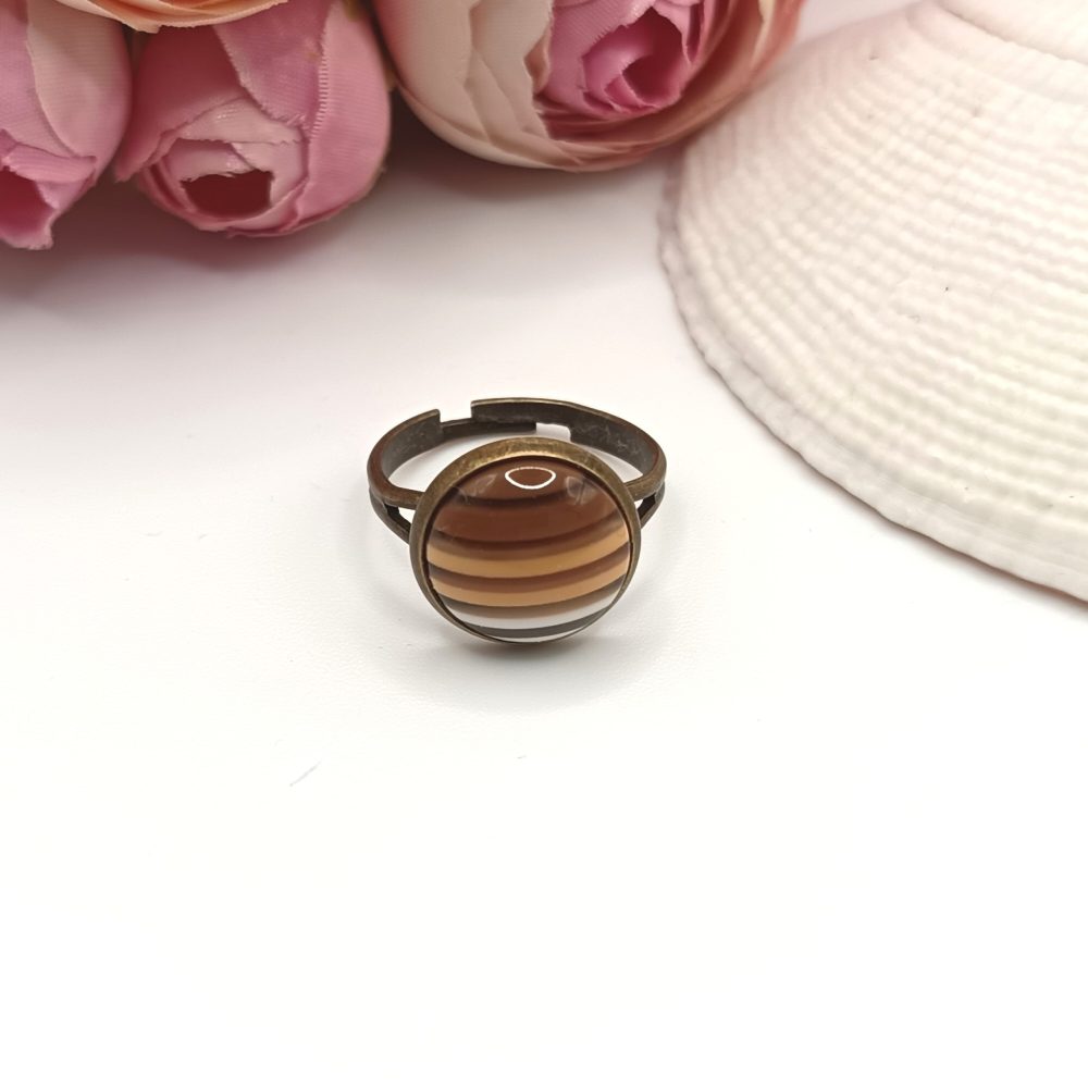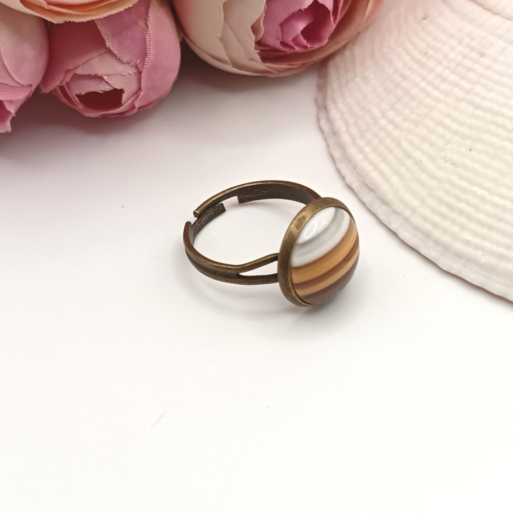 Kezdőlap Gyűrűk Antik bronz gyűrű – fehér / barna csíkos lencsével