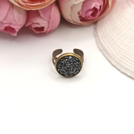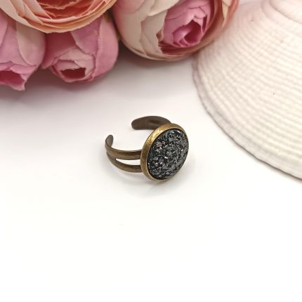 Antik bronz gyűrű – csillogó grafitszürke lencsével