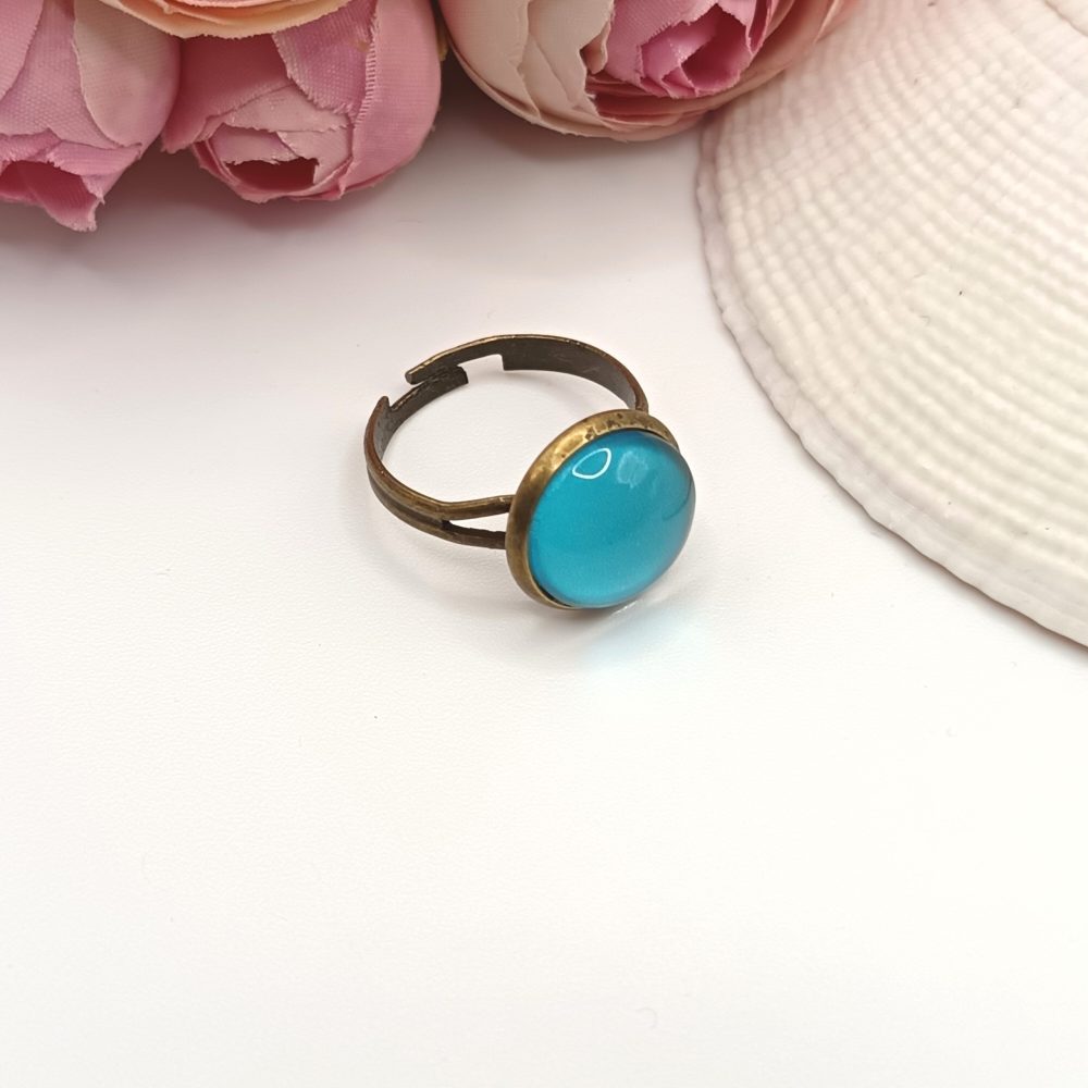Kezdőlap Gyűrűk Antik bronz gyűrű – világoskék üveg lencsével
