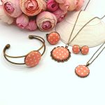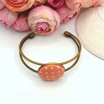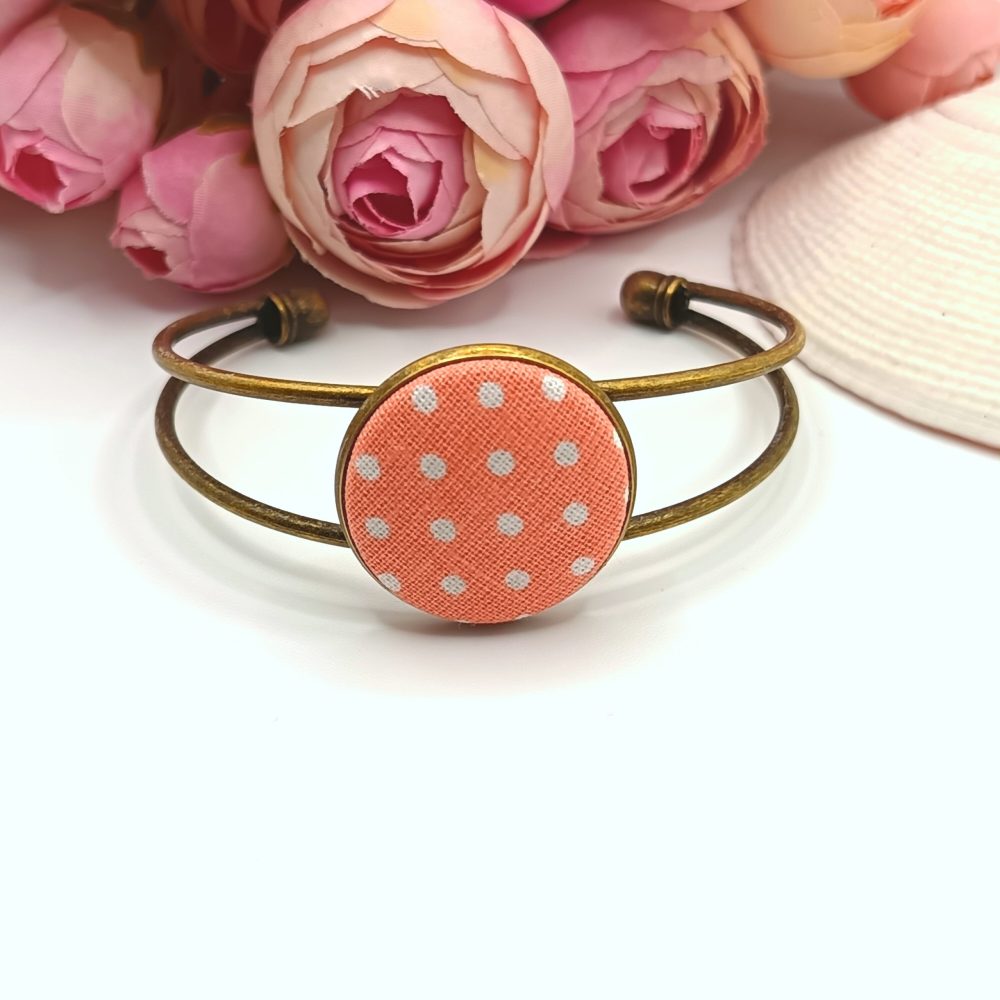 Kezdőlap Karkötők Antik bronz karkötő – barack, fehér pöttyös textillel
