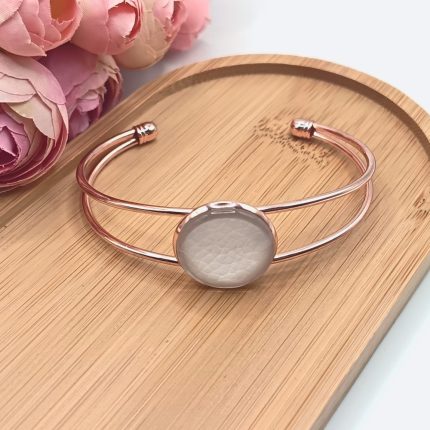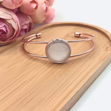 Rózsaarany karkötő – fehér textilbőr lencsével