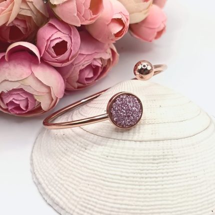Rózsaarany karkötő – csillogó halványrózsaszín lencsével