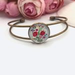 Rózsaarany karkötő – lila / rózsaszín virágokos lencsével