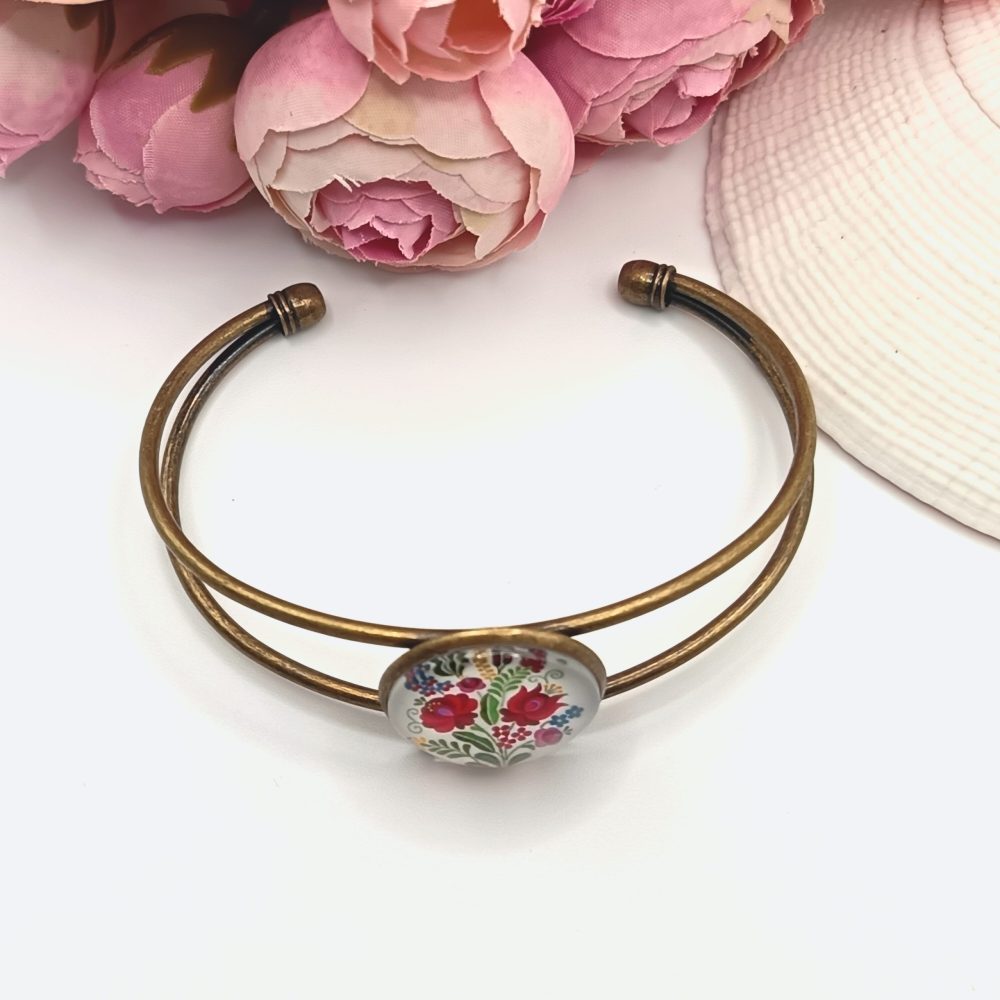 Kezdőlap Karkötők Antik bronz karkötő – matyó mintás lencsével