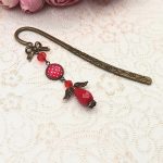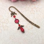 Antik bronz könyvjelző – piros, fehér pöttyös lencsével