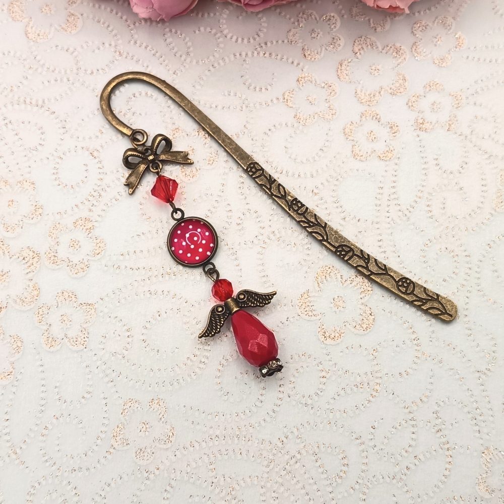 Kezdőlap Kulcstartók, könyvjelzők Antik bronz könyvjelző – piros, fehér pöttyös lencsével