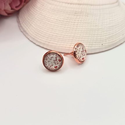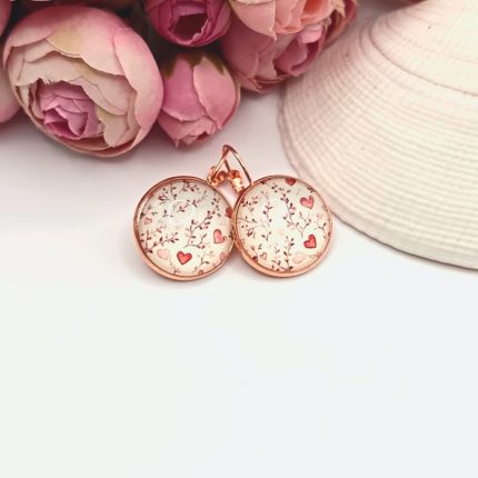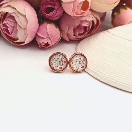 Rózsaarany bedugós fülbevaló – piros szívecskés lencsével