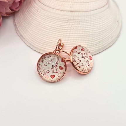 Rózsaarany franciakapcsos fülbevaló – piros szívecskés lencsével