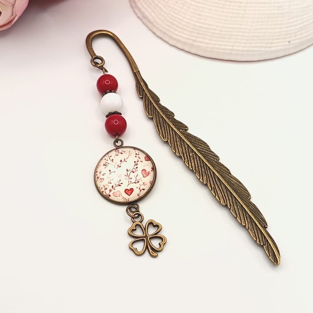 Kezdőlap Kulcstartók, könyvjelzők Antik bronz könyvjelző – piros szívecskés lencsével