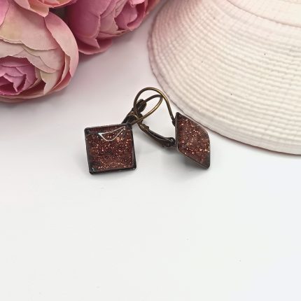 Antik bronz franciakapcsos fülbevaló – antik bronzbarna csillogó textilbőrrel