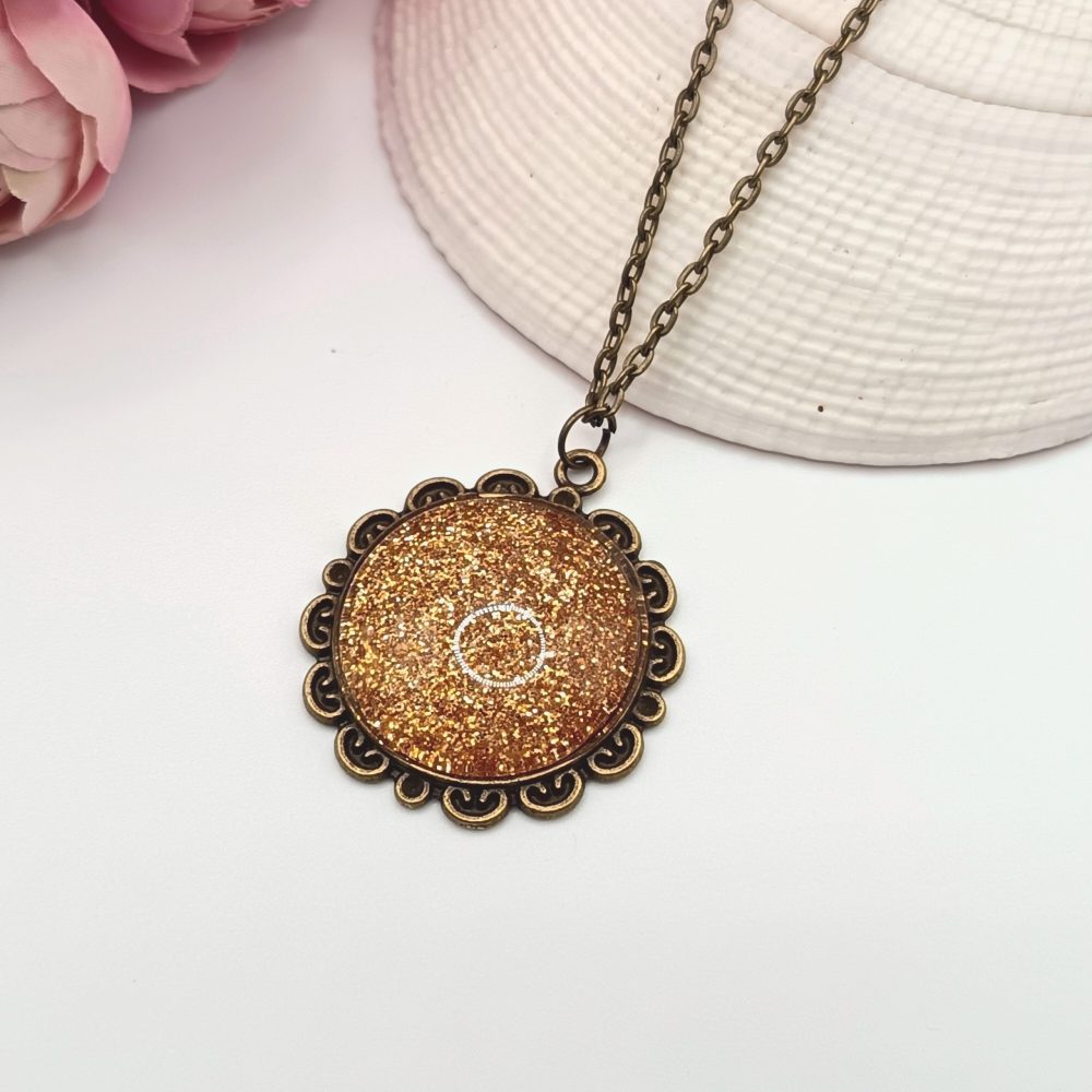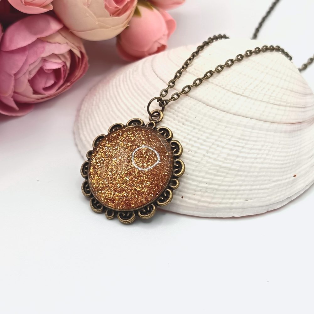 Kezdőlap Nyakláncok Antik bronz nyaklánc – antik arany csillogó textilbőrrel