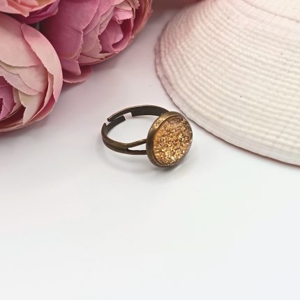 Antik bronz gyűrű – antik arany csillogó textilbőrrel