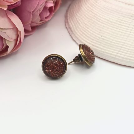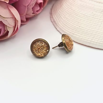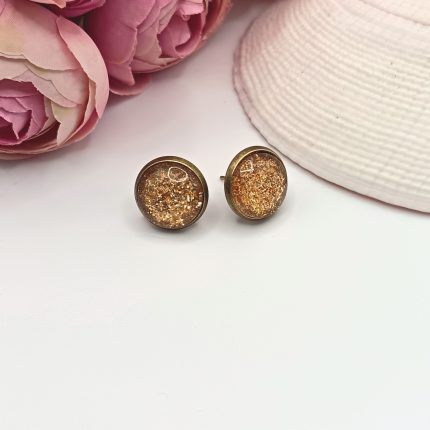 Antik bronz bedugós fülbevaló – antik arany csillogó textilbőrrel