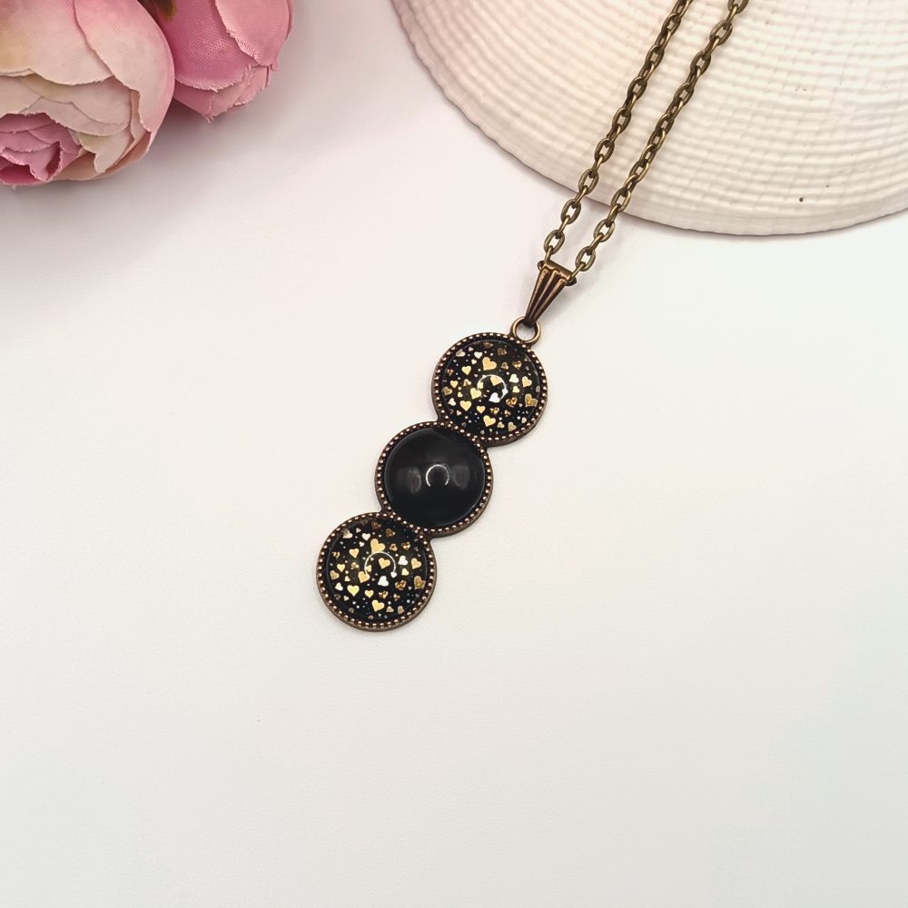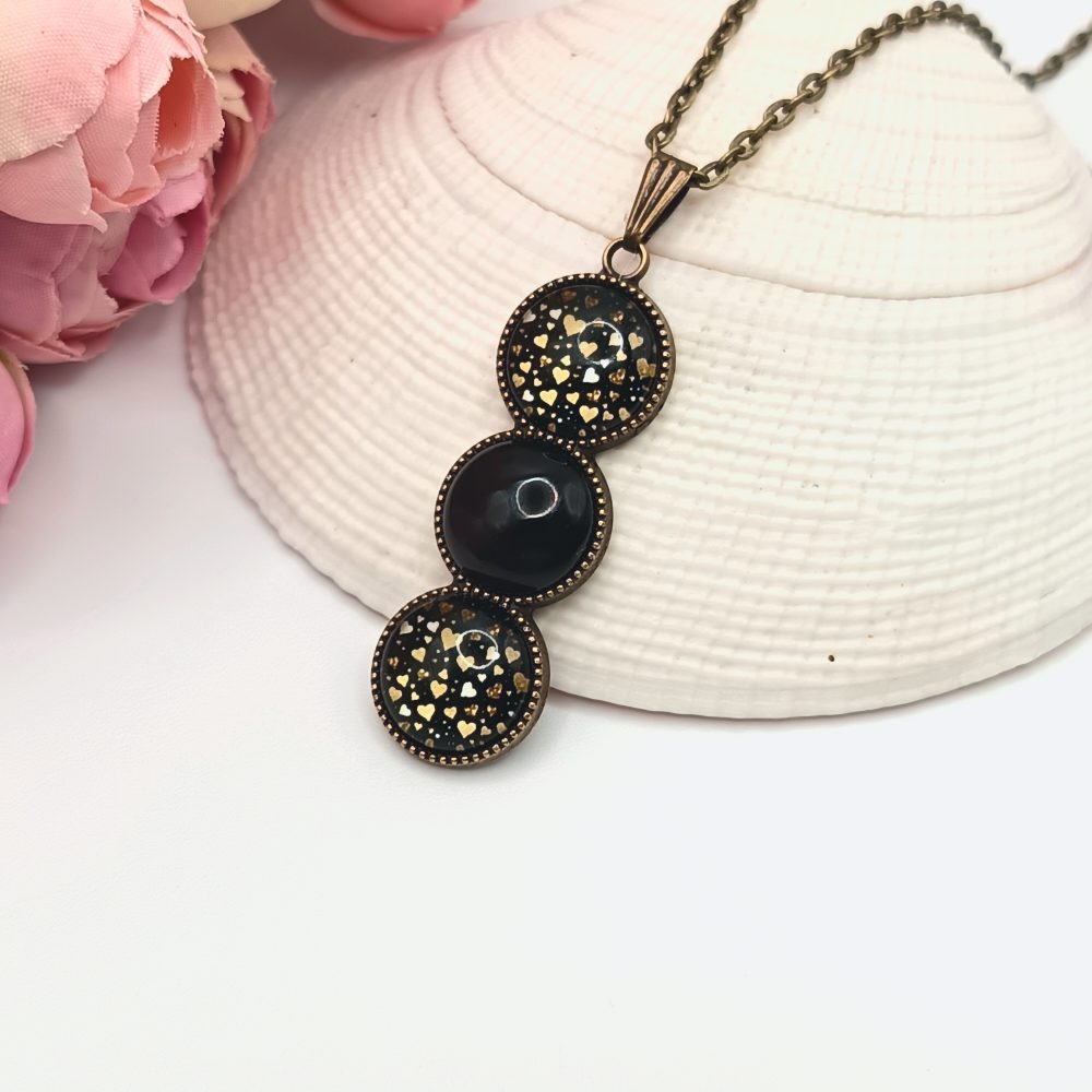 Kezdőlap Nyakláncok Antik bronz nyaklánc – fekete, arany szívecskés lencsével