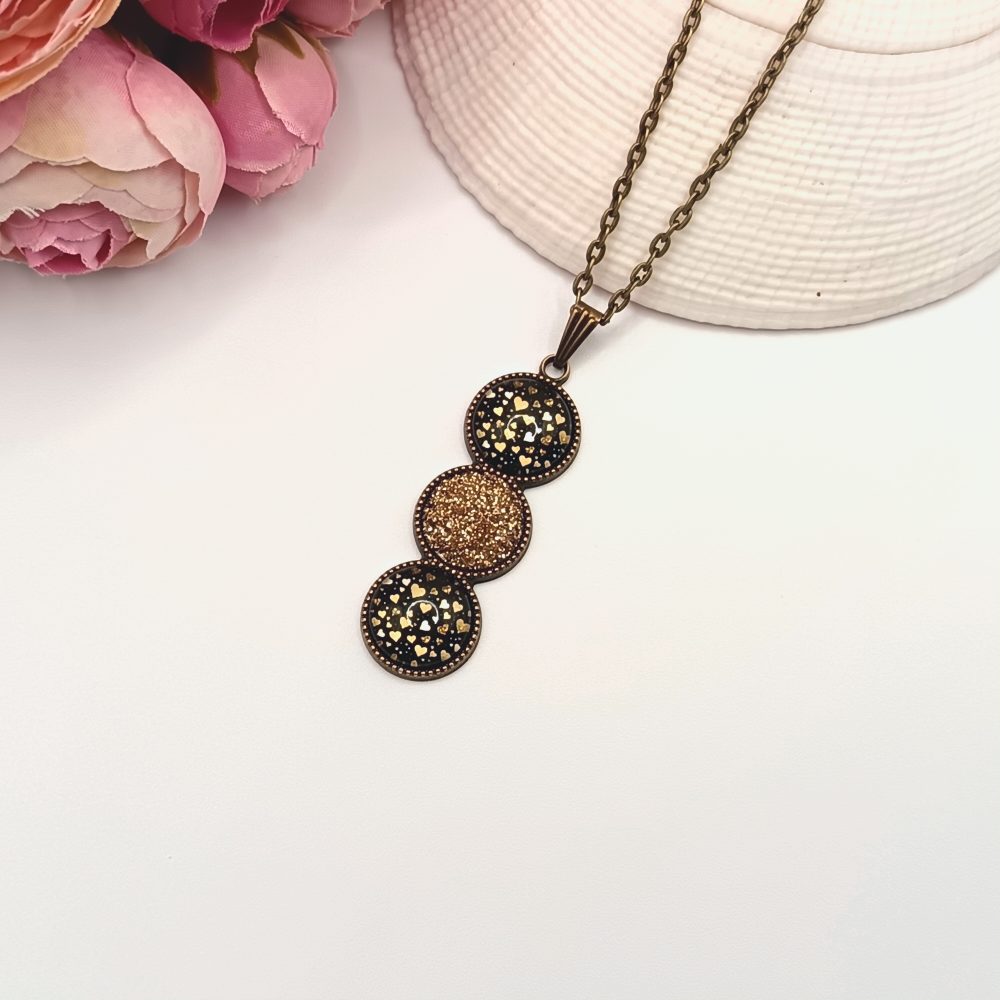 Kezdőlap Nyakláncok Antik bronz nyaklánc – fekete, arany szívecskés lencsével