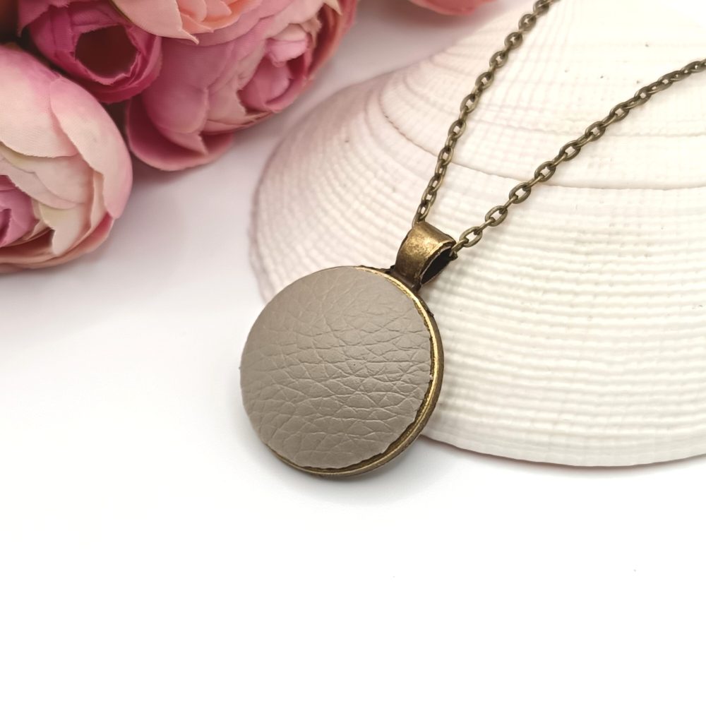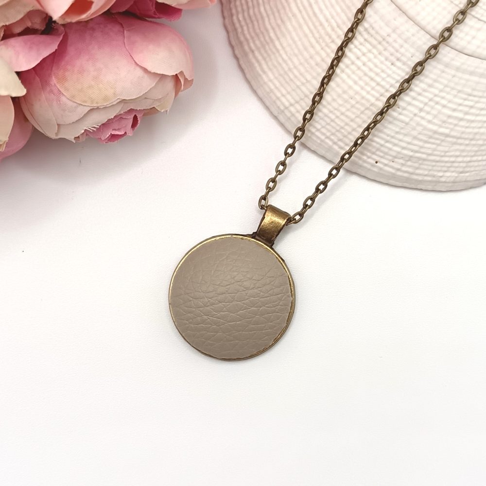 Antik bronz nyaklánc – galambszürke textilbőrrel