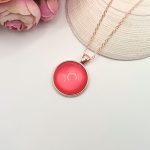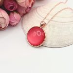 Rózsaarany nyaklánc – halványpiros üveg lencsével