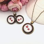 Antik bronz nyaklánc – piros üveg lencsével és piros gyönggyel