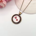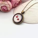 Antik bronz nyaklánc – fehér / piros üveg lencsével
