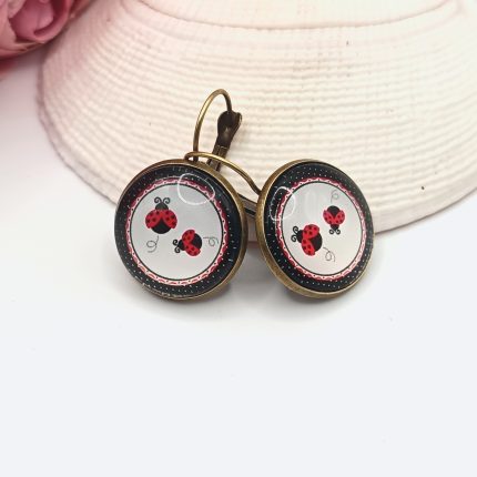 Antik bronz franciakapcsos fülbevaló – katica mintás lencsével 2300 Ft