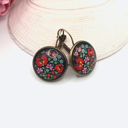 Antik bronz franciakapcsos fülbevaló – matyó mintás lencsével 2300 Ft