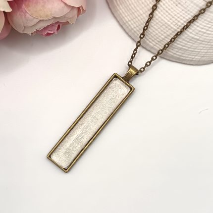 Antik bronz nyaklánc – fehér csillogó textilbőrrel