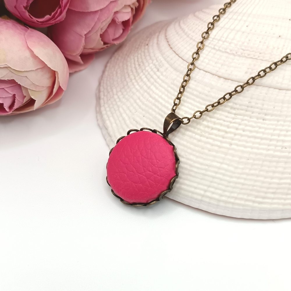 Kezdőlap Nyakláncok Antik bronz nyaklánc – pink textilbőrrel