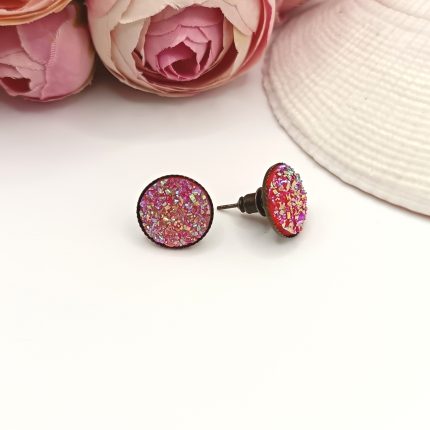 Antik bronz bedugós fülbevaló – csillogó piros lencsével