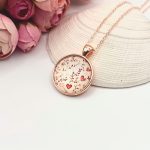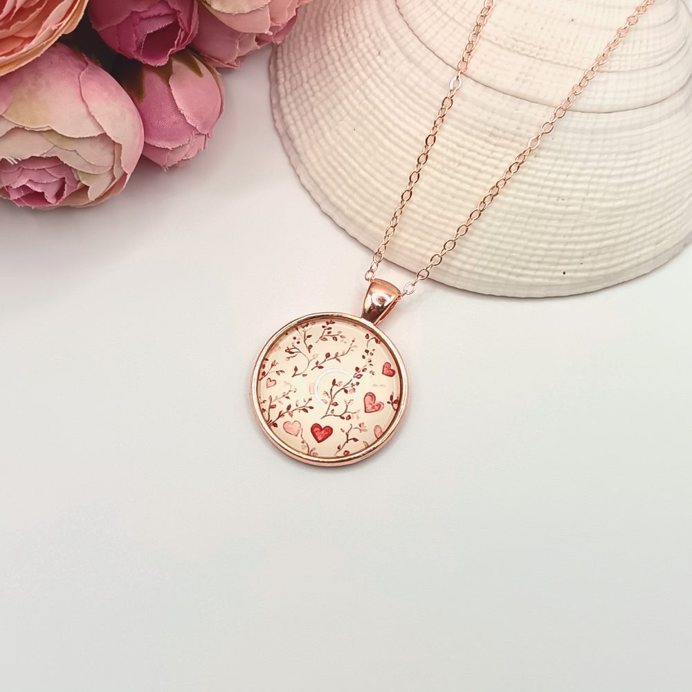 Rózsaarany nyaklánc – piros szívecskés üveg lencsével