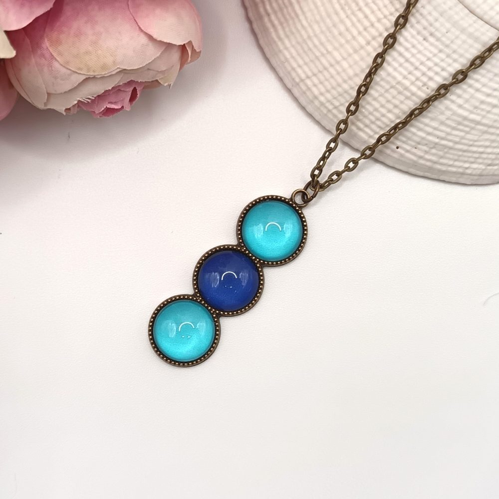 Kezdőlap Nyakláncok Antik bronz nyaklánc – világoskék / sötétkék üveg lencsével