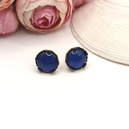 Antik bronz bedugós fülbevaló – sötétkék üveg lencsével