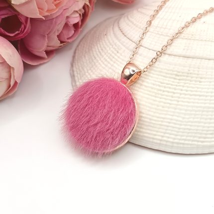 Rózsaarany nyaklánc – puha rózsaszín szőrmével