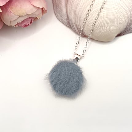 Ezüst nyaklánc – puha acélkék szőrmével