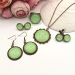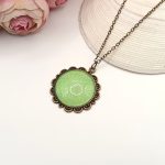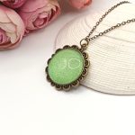Kezdőlap Nyakláncok Antik bronz nyaklánc – világoszöld csillogó textilbőrrel