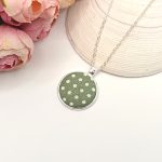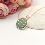 Kezdőlap Nyakláncok Ezüst nyaklánc – zöld, fehér pöttyös textillel