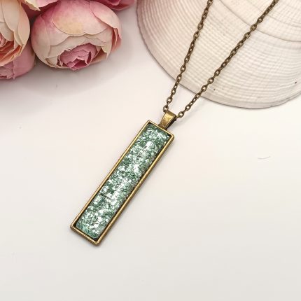 Antik bronz nyaklánc – glitteres smaragdzöld textilbőrrel