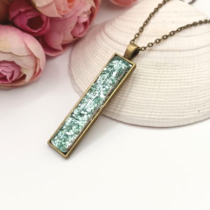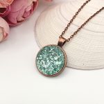 Kezdőlap Nyakláncok Antik réz nyaklánc – glitteres smaragdzöld textilbőrrel