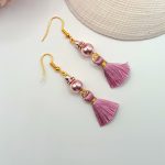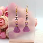 Arany akasztós fülbevaló – rózsaarany hematit gyönggyel, mályva bojttal