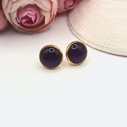 Arany bedugós fülbevaló – sötét lila üveg lencsével