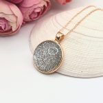 Antik bronz nyaklánc – ezüst csillogó textilbőrrel