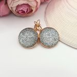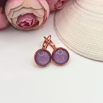 Rózsaarany franciakapcsos fülbevaló – lila csillogó textilbőrrel 2200 Ft