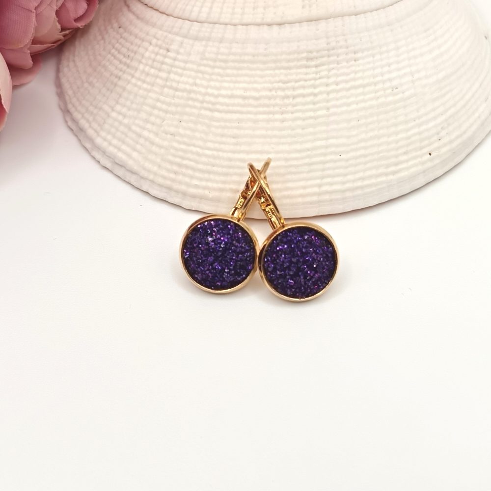 Arany franciakapcsos fülbevaló – csillogó sötétlila lencsével