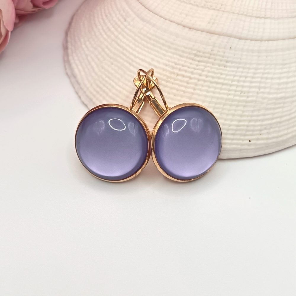 Arany franciakapcsos fülbevaló – világoslila üveg lencsével