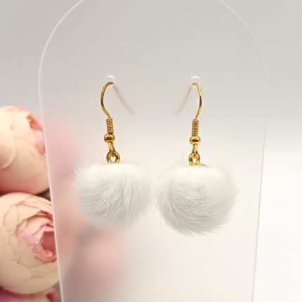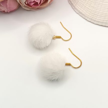 Csipke fehér – Szőrme labda fülbevaló arany kampóval
