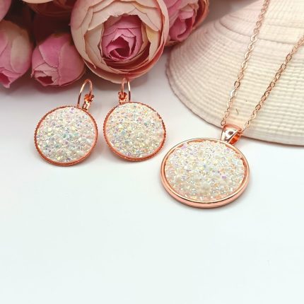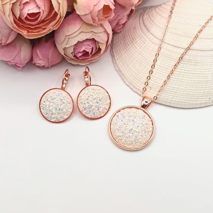 Rózsaarany ékszerszett – csillogó fehér lencsével