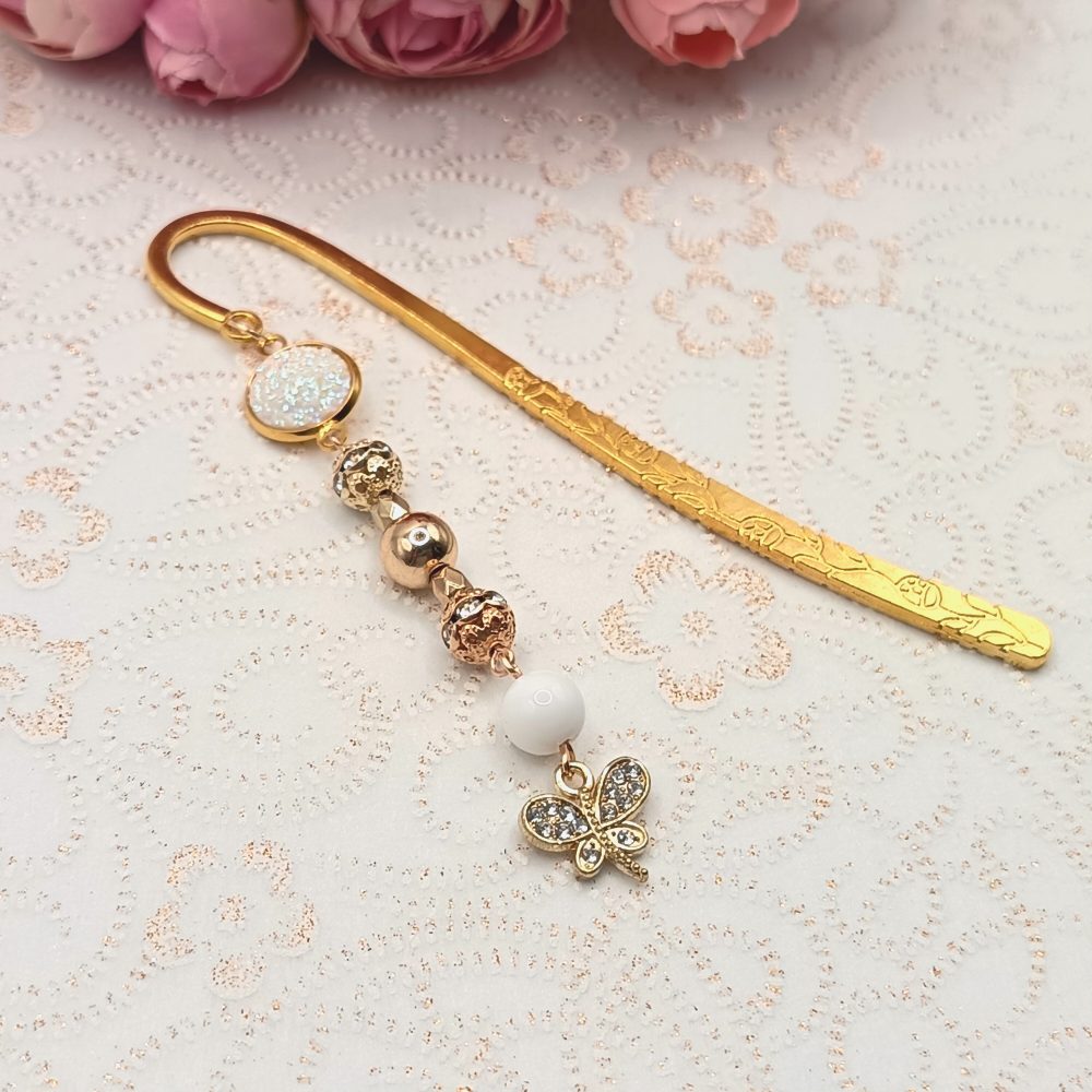 Kezdőlap Kulcstartók, könyvjelzők Arany könyvjelző – csillogó fehér lencsével